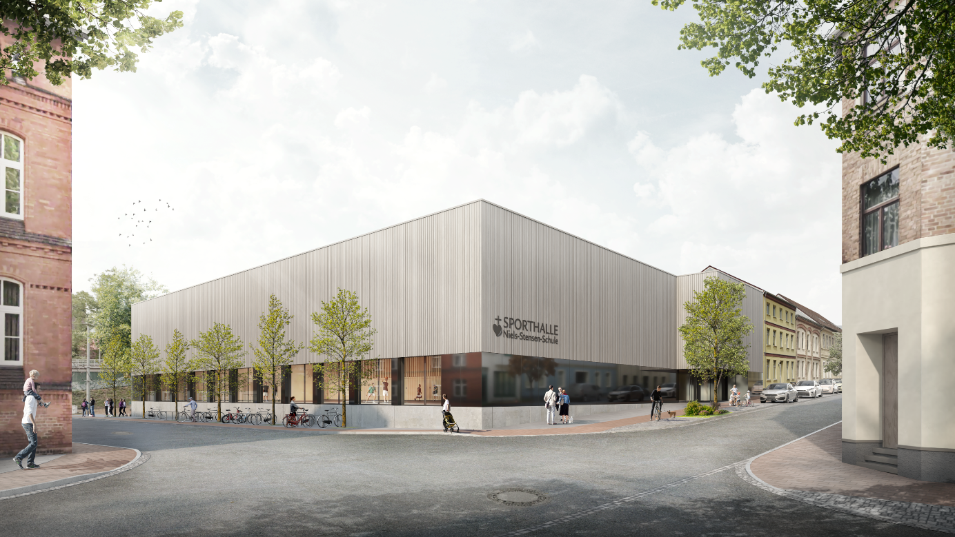 „Die Niels-Stensen-Schule steht als konfessionelle Schule für die Werte des Miteinander und Füreinander. Sie ist nicht zuletzt deshalb eine der beliebtesten Schulen in Schwerin. Auch die Zusammenarbeit zwischen Schule, Schulträger, Stadt und Land steht bei diesem Turnhallenprojekt für vorbildhaftes Miteinander: Das reicht von der Verständigung über den architektonischen Entwurf bis zur Unterstützung für die öffentlichen Förderung des Projekts. Unser Vorschlag, dem Land diese Turnhalle für eine EU-Förderung mit EFRE-Mitteln vorzuschlagen, fand nicht zuletzt in der Stadtvertretung breite Zustimmung“, würdigte der stellvertretende Oberbürgermeister und Baudezernent Bernd Nottebaum die Zusammenarbeit.